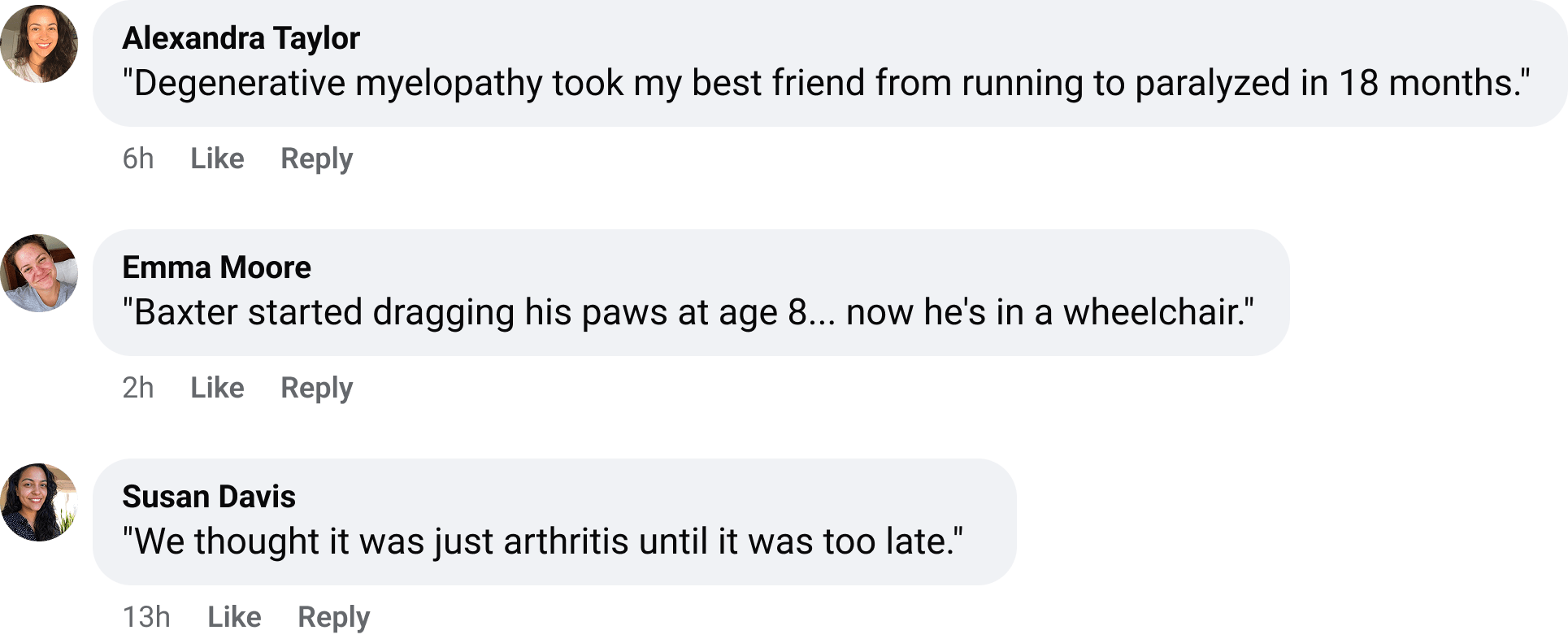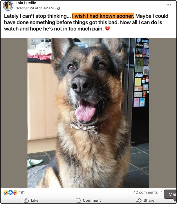 I read heartbreaking stories from owners who'd spent thousands on wheelchairs, physical therapy, acupuncture...