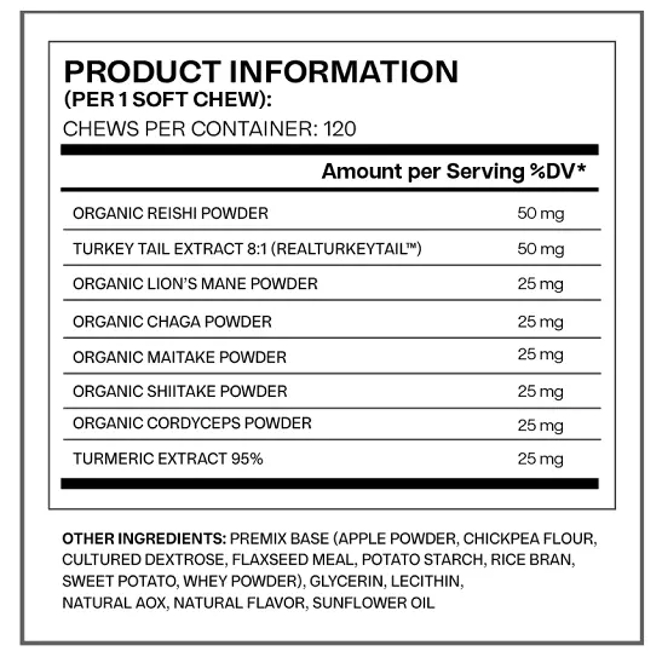 Most allergy supplements contain 1-2 basic ingredients like quercetin or fish oil. Our formula combines 7 medicinal mushrooms plus turmeric - ingredients you won't find together in any other allergy chew. We address the root immune imbalance, not just symptoms.