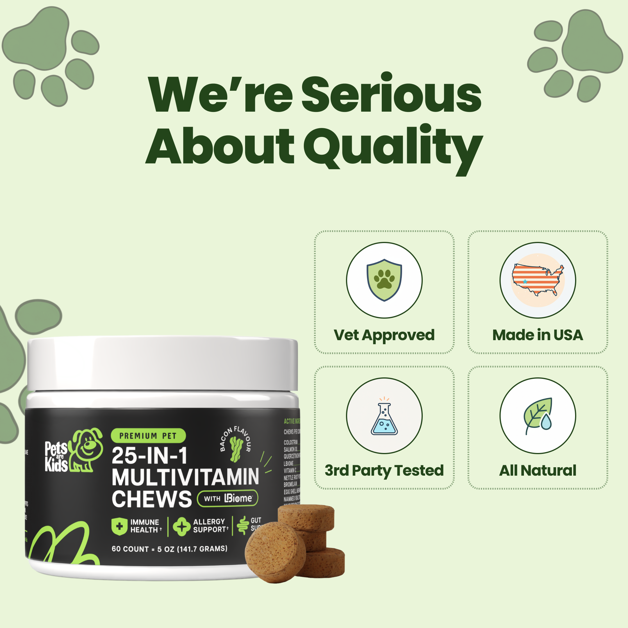 The 25-in-1 formula uses natural ingredients and is generally safe to use with most medications. However, we always recommend consulting with your veterinarian before adding any supplement to your dog's routine, especially if they're currently on prescription allergy medications like Apoquel or Cytopoint.